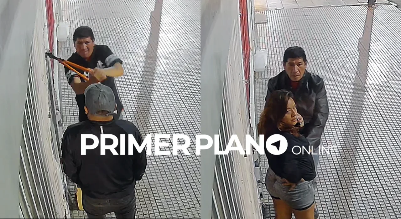 Las imágenes a las que accedió Primer Plano Online muestran la mecánica usada por los malvivientes. En un recuento cronológico, primero se los observa pasar a las 3.12 de la madrugada y romper con una llave los dos candados de ingreso al negocio.