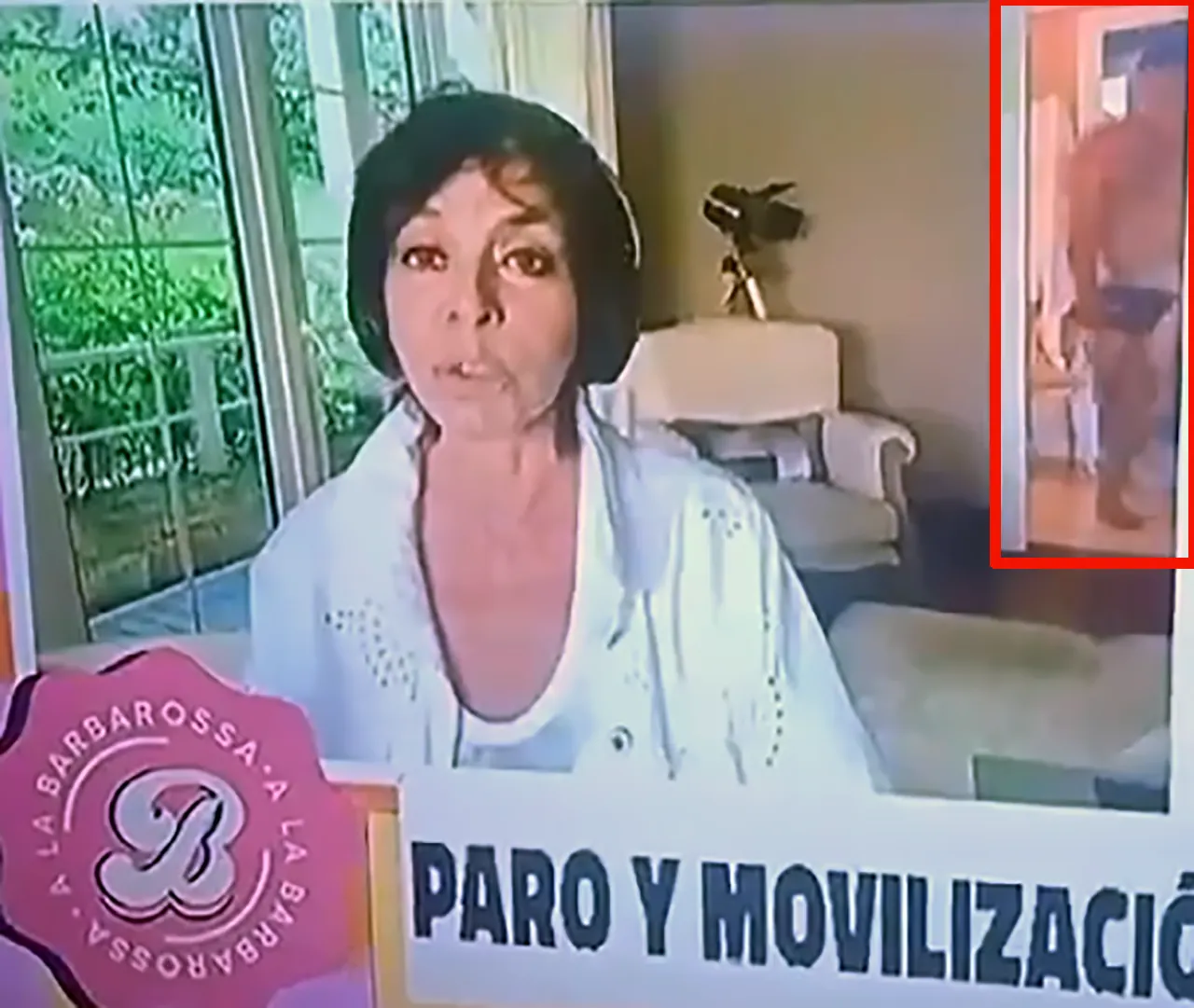 De fondo en la pantalla se vio a un hombre completamente desnudo salir del baño, con un objeto que le cubría la zona genital. La imagen, de apenas segundos, fue a espaldas de la cronista, que no se enteró de lo que ocurría. Al menos en ese instante, porque la secuencia no tardó nada en hacerse viral.