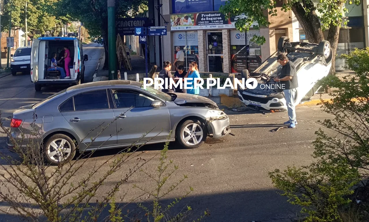 Ocurrió en la esquina de las calles Brandsen y Bacacay, y fue protagonizado por un VW Vento gris y un Renault Sandero blanco, que es el que terminó sobre la vereda, ruedas para arriba y contra un árbol.