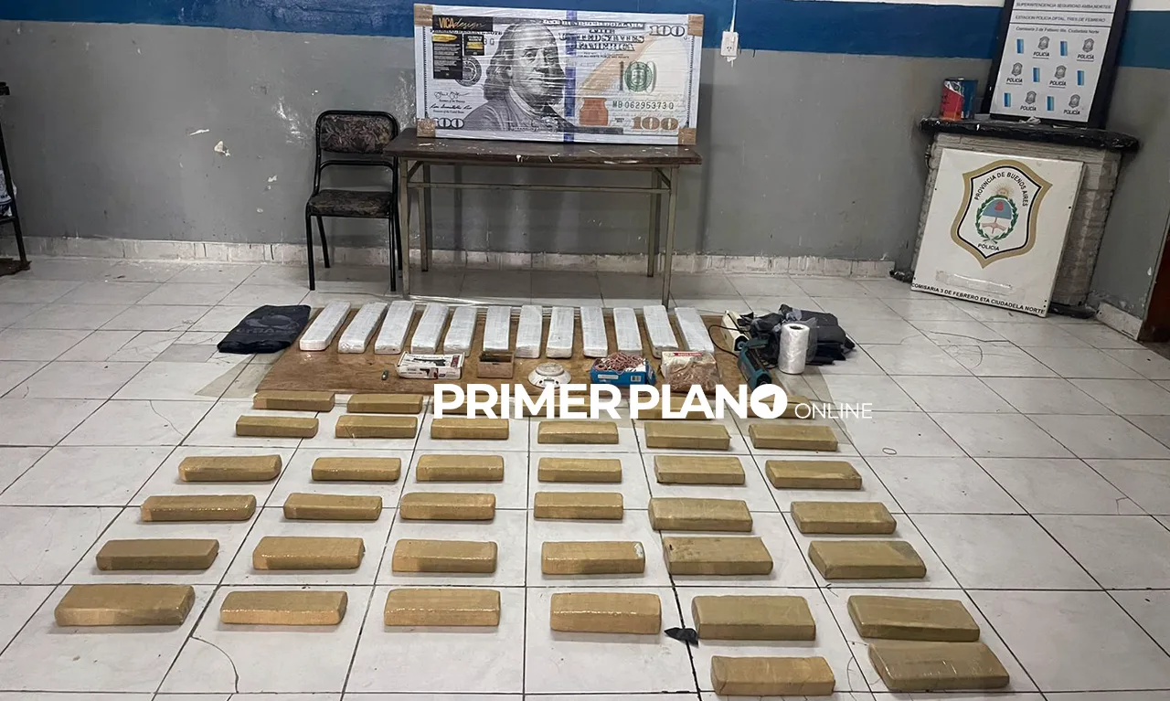 Sin embargo, mayúscula fue la sorpresa del personal policial que concretó la detención: en ese lugar había un total de 58 kilos de marihuana en panes compactos, envoltorios para fraccionar la sustancia ilícita, una réplica de pistola calibre .9 milímetros, 44 municiones de ese calibre, 4 cargadores, balanza de precisión y dos termoselladoras. Además, dos celulares que fueron incautados para pericias.