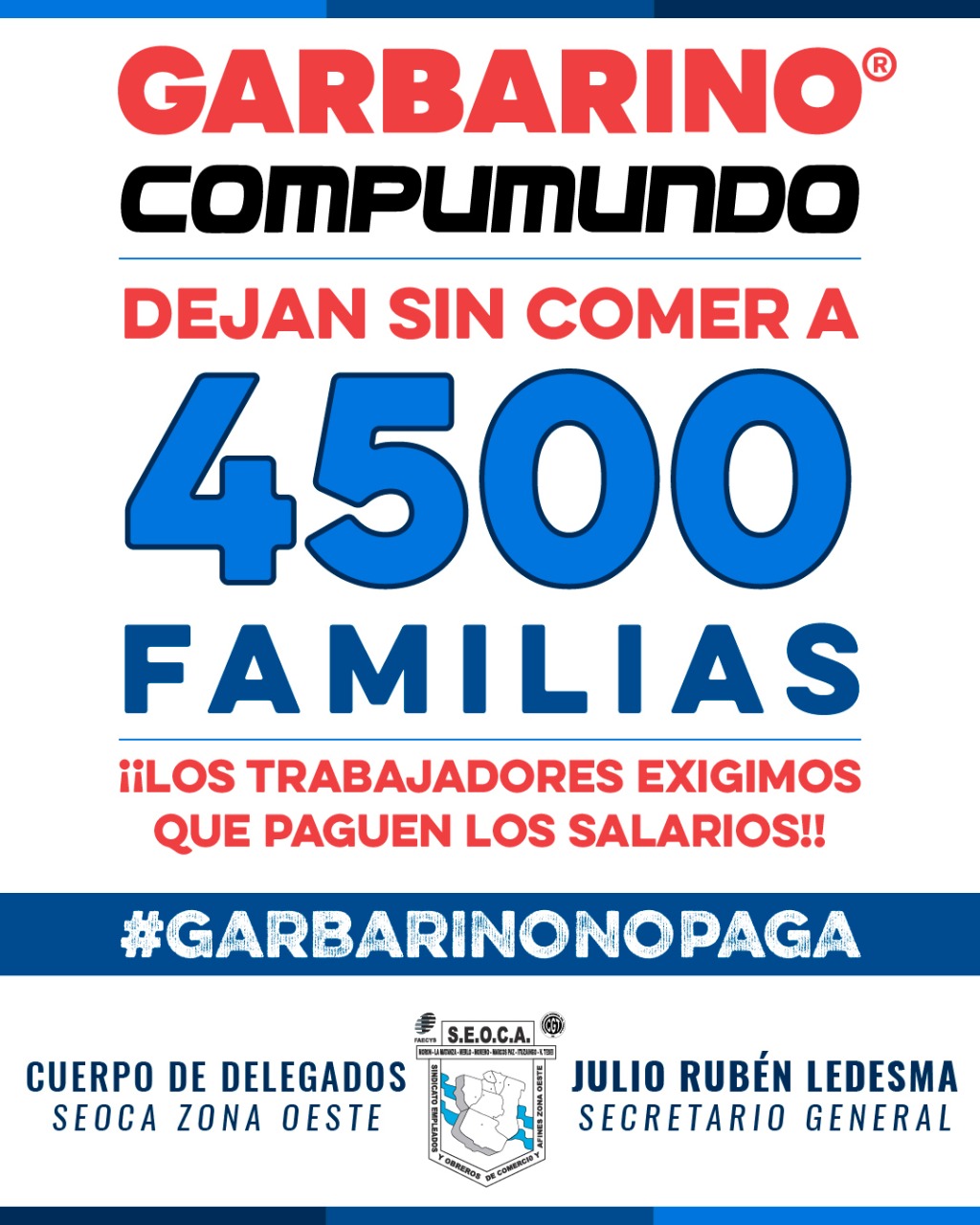 Por lo pronto, el SEOCA envió una intimación a las empresas comandadas por Omar y Daniel Garbarino. “Esperemos que revean esta situación cuando antes y que nos abonen lo que nos corresponde cumpliendo como lo hacemos nosotros cada día”, cerró la delegada gremial.