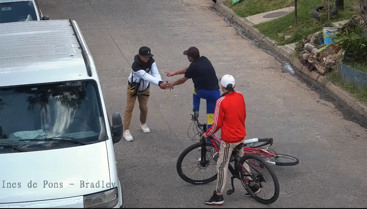 Tal como se observa en la filmación, el asesino -de campera blanca y negra, pantalón marrón y gorra negra- pedaleaba con un acompañante sentado en el manubrio. En un momento determinado alcanzó al sujeto que resultó fallecido, que se trasladaba en soledad en otra bicicleta.