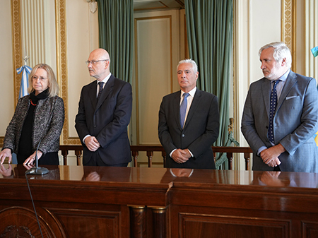 Del acto protocolar, realizado en el Salón de Audiencias de la Suprema Corte, también participaron la presidenta del Tribunal de Casación Penal bonaerense, Florencia Budiño; el director general de Justicia de Paz del Tribunal, Sebastián Martínez; y el vicepresidente del Colegio de Magistrados provincial, Matías Rappazzo, quien además es presidente de la Asociación de Magistrados y Funcionarios Judiciales de Morón.