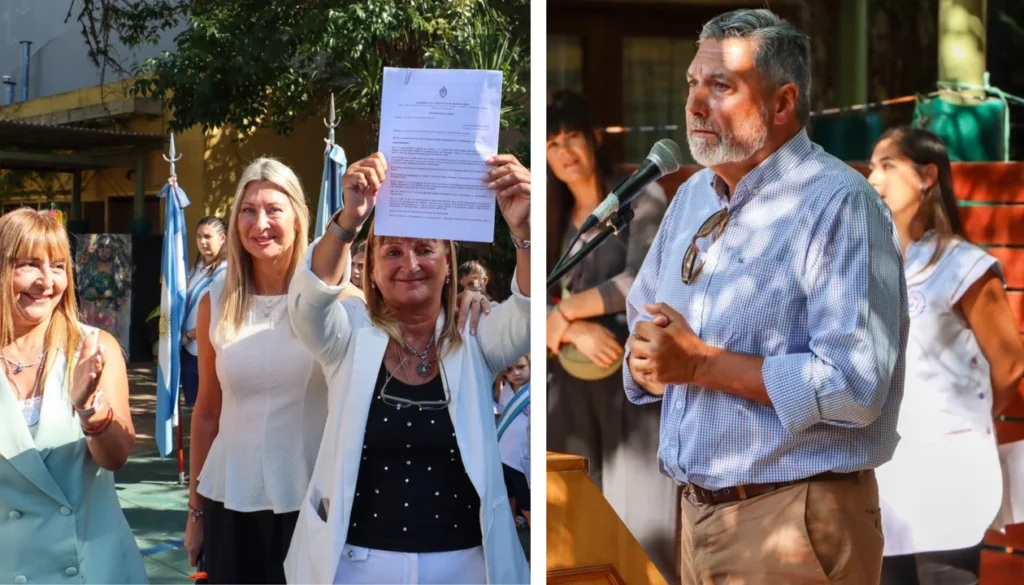 La senadora provincial Mónica Macha y la nacional Juliana Di Tullio, dos dirigentes que acompañaron activamente a la institución educativa para lograr la subvención