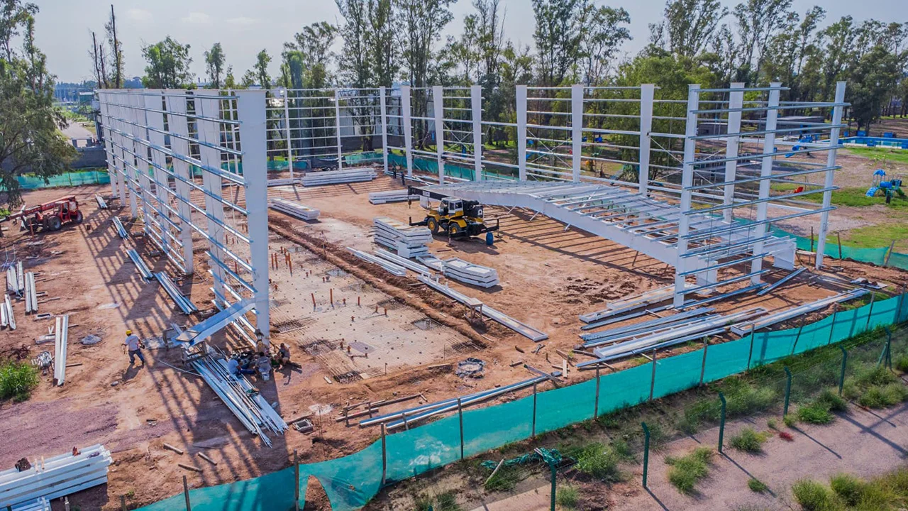 El Municipio de Moreno continúa con la construcción del gimnasio multideportes en el polideportivo Diego Armando Maradona.