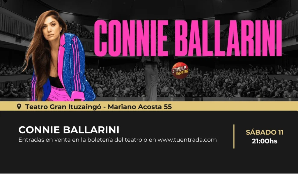 Connie Ballarini, la creadora de un contenido inigualable se presenta en el teatro Gran Ituzaingó a las 21hs.. Esta polifacética artista lleva el humor a nuevos límites con su show en constante evolución, que mezcla diálogos interactivos con el público y un stand up afilado y desopilante.