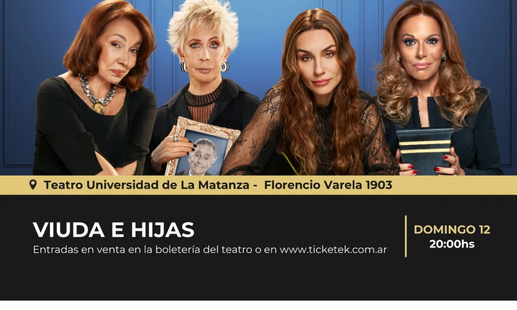En el marco de su gira nacional, Viuda e hijas se presenta en esta oportunidad en el Teatro Universidad de la Matanza  a las 20hs. No podés perderte esta comedia totalmente disparatada dirigida por Héctor Díaz y protagonizada por grandes actrices.