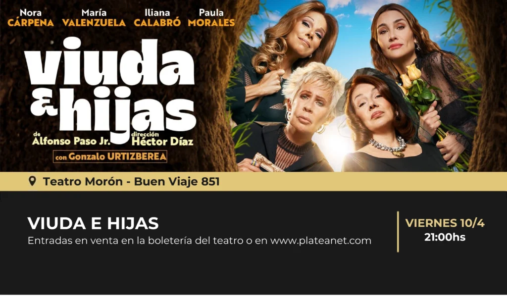 Nora Cárpena, María Valenzuela, Paula Morales e Ileana Calabró protagonizan Viuda E Hijas, la obra que tendrá lugar en el escenario del Teatro Moron a las 21hs. Una herencia inesperada les cae como un rayo del cielo a una madre y sus dos hijas. Podría ser la solución a una parte de sus vidas. El problema es que hay ciertas condiciones para poder recibirlo: hablar con sinceridad descarnada. Por si fuera poco, se menciona a un cuarto heredero, que nadie conoce: ¿Quién es?