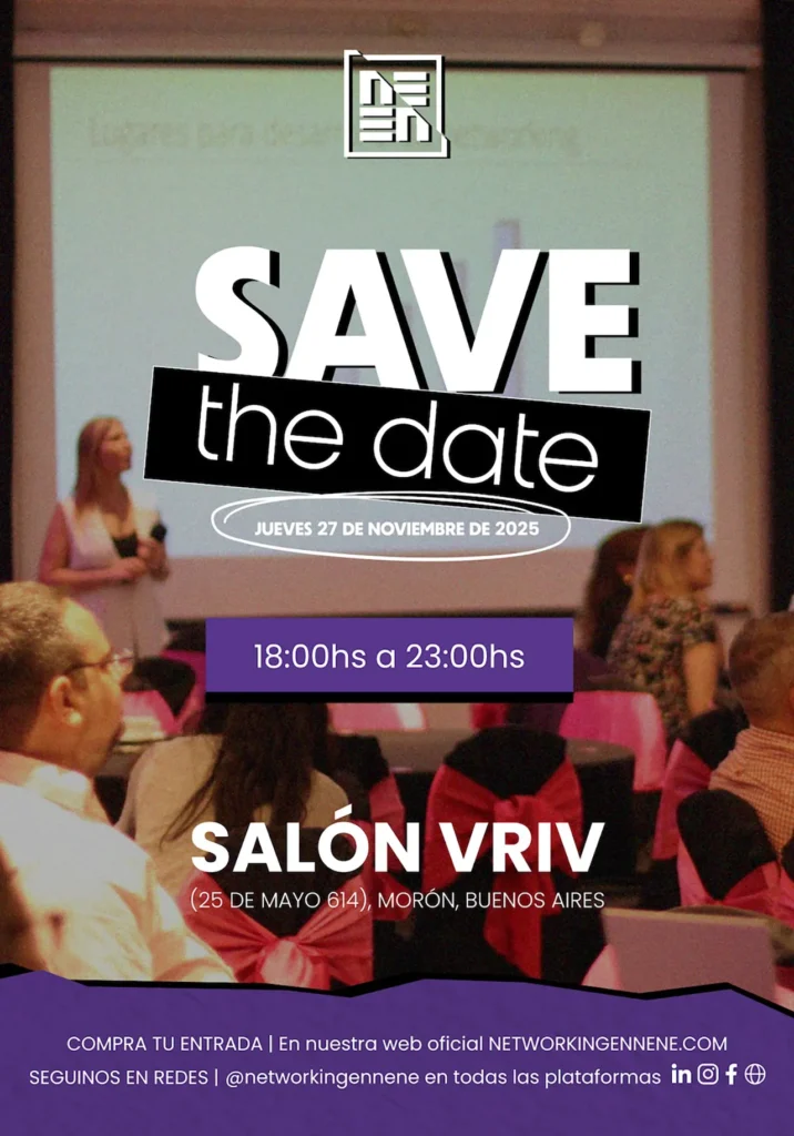 Por séptima edición consecutiva, este año se realizará el jueves 27 de noviembre desde las 18 en VRIV Salón (25 de Mayo 614) de Morón. Las entradas ya están disponibles en www.networkingennene.com. Según se informó desde la organización, son más de 250 las empresas de la región convocadas.