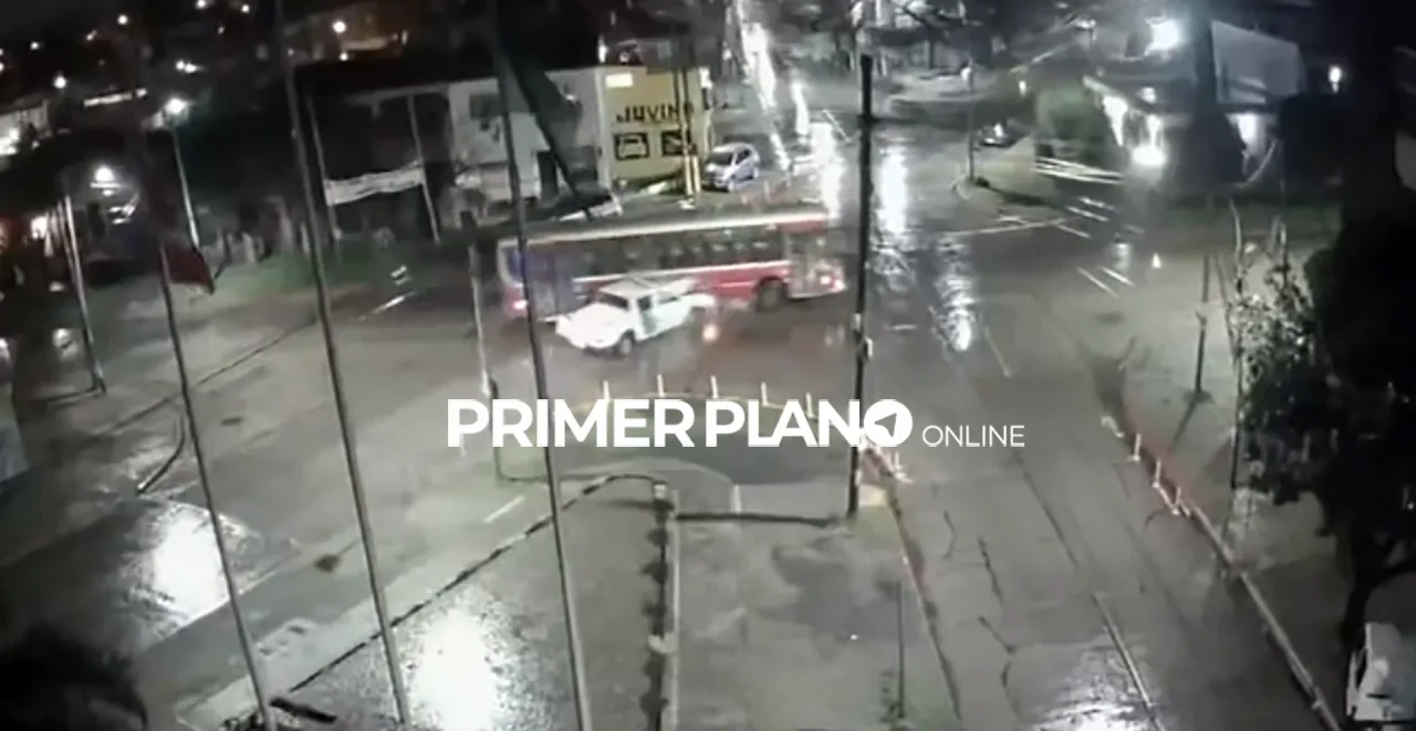 El hecho ocurrió en la madrugada de hoy lunes minutos antes de las 4 en la esquina de 9 de Julio y Ceballos y, como queda en claro en las imágenes, el transporte público realizaba su recorrido habitual y no cometió ninguna maniobra temeraria. Por el contrario, queda claro que fue el patrullero el que circulaba en exceso de velocidad por la persecución.