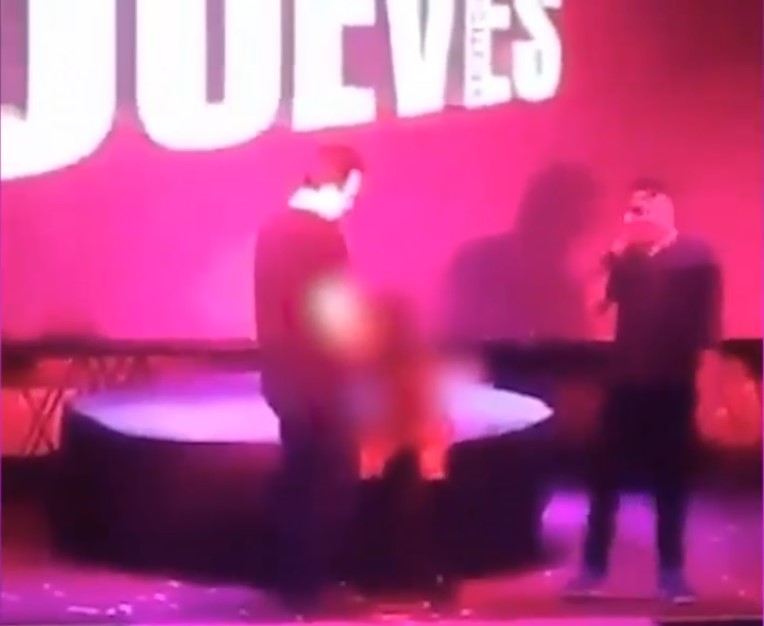 Se corta la música y el animador aparece en el escenario. Detrás de él, una pantalla, en donde la palabra «jueves» se mueve de un lado hacia el otro. Su interrupción adelanta lo que acontecerá. La mayoría lo sabe, aunque una pequeña parte del público desconoce lo que está por ocurrir. Mientras explica las consignas del concurso que se aproxima, una mujer irrumpe en el ambiente: es Ana Touché, actriz porno argentina, quien será -de ahora en más- la protagonista de la escena.