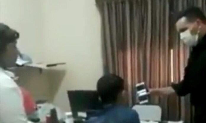 “Esto es una persona en Italia. Véanla bien”, arranca diciendo el policía mientras les muestra en su celular a un paciente enfermo de coronavirus, al parecer en sus últimos momentos de vida. “¿Usted quiere que esto llegue acá? Le estoy preguntado…¿usted quiere que esto llegue acá?”, le pregunta al joven que se encuentra sentado frente a un escritorio con la cabeza gacha. “No”, le responde en voz baja y temerosa.