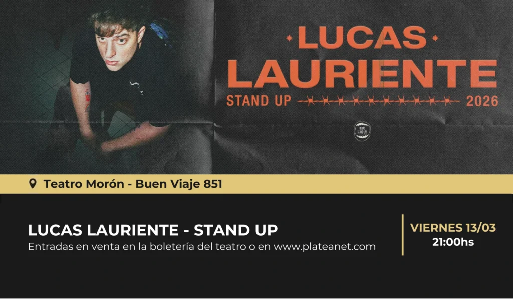 Lucas Lauriente, consagrado como uno de los grandes referentes del stand up argentino y con más de doce años dentro del circuito, continúa captando la atención del público joven y despertando la curiosidad en los adultos. Se presenta en el Teatro Morón a las 21 hs.